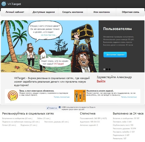 | Данный вид заработка является самым простым.Для того чтобы начать нужно иметь страницу вконтакте. И так заработать на своей странице вконтакте можно на сайте vktarget регистрация очень простая нужно просто нажать войти через вконтакте. И так мы вошли далее сверху нажимаем Доступные задания, для выполнения переходим по ссылке группы где нужно подписаться и тогда только нажимаем кнопку вступить в группу , эти действия займут пару секунд. Не большой секрет заключается в том чем больше у вас друзей тем больше будет таких заданий соответственно и денег. Также там можно заработать пригласив друзей, система платит 1 руб. за каждого приглашенного участника и 10% от его дохода.Приглашать нужно по своей партнерской ссылке которою вы найдете в Личном кабинете. Пример выполнения заданий на картинке ![]() | |